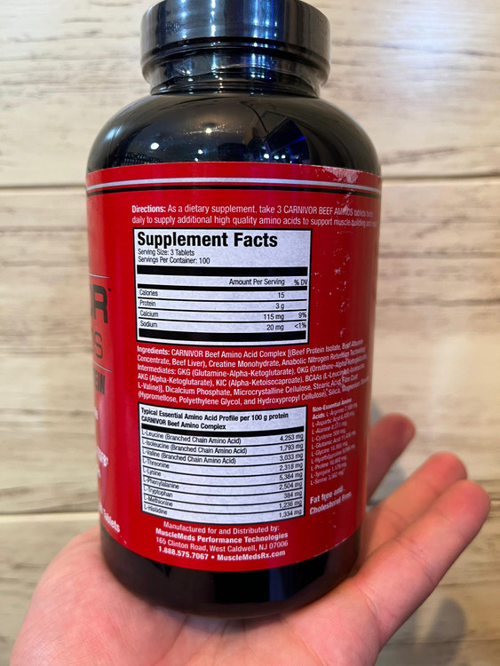 مکمل آمینو بیف کارنیور ماسل مدز دارای خصوصیات آنابولیک گوشت گاو به شکل فوق غلیظ و فوق العاده راحت به فرم یک قرص بدون چربی، کلسترول یا کالری اضافی می باشد. مکمل آمینو بیف کارنیور حاوی 100 درصد آمینوهای خالص گوشت گاو برای عضله سازی پایدار است.