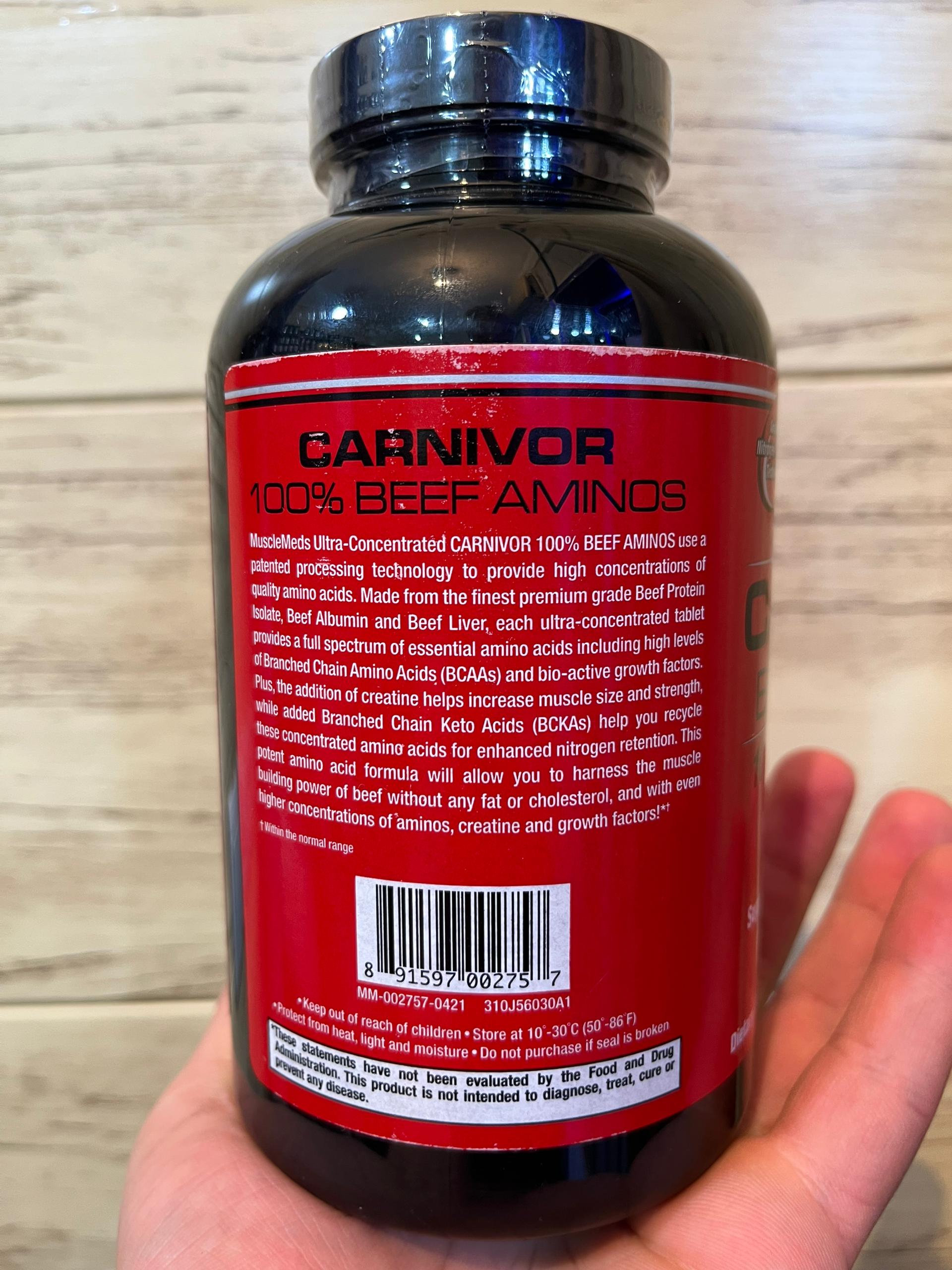 مکمل آمینو بیف کارنیور ماسل مدز دارای خصوصیات آنابولیک گوشت گاو به شکل فوق غلیظ و فوق العاده راحت به فرم یک قرص بدون چربی، کلسترول یا کالری اضافی می باشد. مکمل آمینو بیف کارنیور حاوی 100 درصد آمینوهای خالص گوشت گاو برای عضله سازی پایدار است.