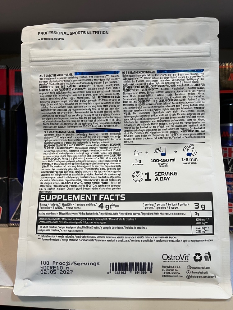 کراتین مونوهیدرات ۳۰۰ گرمی استراوویت اورجینال ضمانت اصالت محصول.